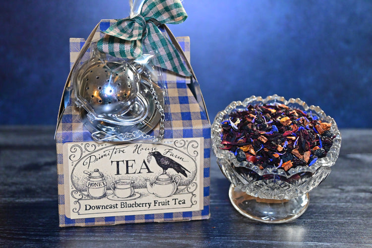 Downeast Blueberry Fruit Tea- Blueberries, apple pieces, elderberry, hibiscus, cornflower petals and natural flavorings