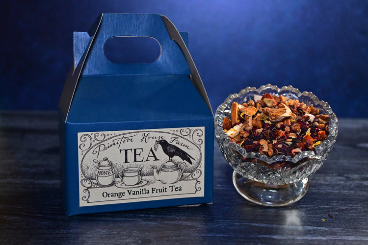 Orange Vanilla Fruit Tea- rosehips, apple orange pieces, hibiscus, sunflower and safflower petals, natural flavors