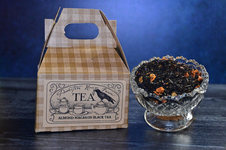Almond Macaron Black Tea- black tea, apple, almonds, blue mallow blossoms, yogurt pieces, natural flavors