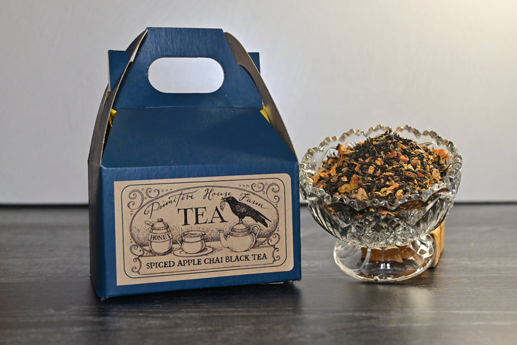 Spiced Apple Chai Black Tea- black tea, cinnamon, ginger, cardamon, orange, cloves, apple pieces and natural flavors